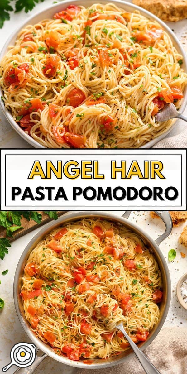 Angel Hair Pasta Pomodoro ist ein einfaches Nudelrezept für die Woche mit Tomaten, Olivenöl und Kräutern, gemischt mit zarten Nudeln, die in nur 2 Minuten gar sind!
